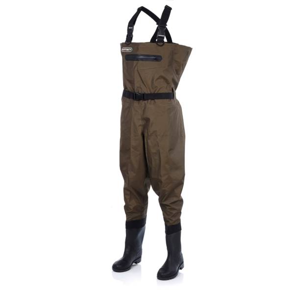 Breathable 3-layer waders with fixed rubber sole boots.