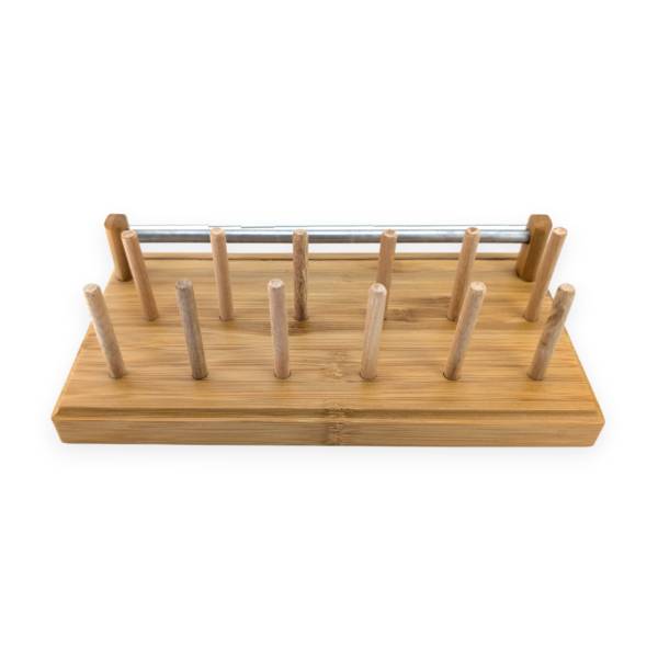 The Rib Runner is a unique tinsel, thread and wire dispenser that maintains constant tension on the spools to virtually eliminate tangles or wasted material. The spools are held in place by dowels and material passes through the slotted soft plastic to keep them separated.